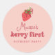 Pink Strawberry Berry First Birthday Party Classic Round Sticker