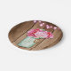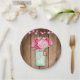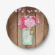 Pink String Lights & Mason Jar Flowers Rustic Wood Paper Plate