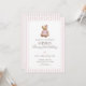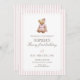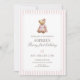 Pink Stripe Beary First Birthday Girl Teddy Bear Invitation