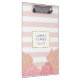 This clipboard features a a delicate pink stripe background, faux gold border, and a group of peonies in pretty blush tones. Coordinates with our Pink Stripe & Blush Peony invitation suites, office supplies, home goods and accessories. Customize with a monogram, name or text of your choice!