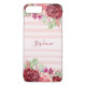 This personalised floral phone cover features blush pink stripes with watercolor burgundy and blush roses and flowers. Personalise it with a name.
