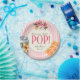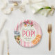 Get ready to celebrate with these adorable 'POP!' baby shower paper plates! Featuring a whimsical illustration of a tropical floral-adorned soda can and refreshing citrus slices, this design is both unique and festive. The playful text announcing 'Shannon's about to POP!' is set against a charming pink and cream striped background. These plates are a perfect way to serve guests and enhance your baby shower's festive atmosphere.