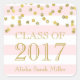 Custom name class of 2017 graduation stickers with light blush pink stripes and gold glitter effect confetti, please note gold is photographic effect only.