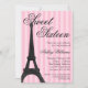 Pink Stripe Paris Themed Sweet 16 Birthday Invitation