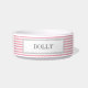 Pretty stripe pink and white pet bowl, in chic, Parisian, feminine style. Featuring a framed border that surrounds your dog or cats name in elegant black typography lettering, this design is pretty pink stylish chic and ready for you to customise with your own fur baby's name.