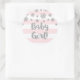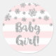 Pink Stripe Silver Snowflake Winter Baby Shower Classic Round Sticker