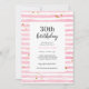 Trendy and modern Birthday Party invitation featuring pink watercolor stripes and matching back page.