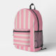 Stylish and practical, this pink striped backpack is perfect for school, travel, or everyday use. Featuring a modern vertical stripe design in soft pink and white, it includes a spacious main compartment, front zipper pocket, and adjustable straps for comfort. The text Name is fully customisable, allowing you to add your own name or personalise it as a unique gift. A trendy and functional accessory for kids, teens, and adults.