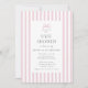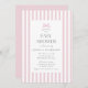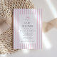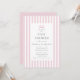 A chic pink and white striped baby shower invitation featuring a sweet pastel bow at the top. The modern preppy design combines playful charm with timeless elegance, making it perfect for celebrating a mum-to-be in style. Personalise with your own details for a unique and memorable baby shower.