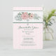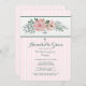 A beautiful pink and white striped invitation featuring a crescent of pink and grey, watercolored-flowers and foliage. Perfect for any religious sacrament. The featured cross can be removed making this a versatile invitation.