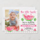 Pink Striped One In A Melon Photo 1st Birthday Invitation