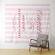 The tapestry features soft pink stripes that create a serene and inviting backdrop, exuding a sense of timeless elegance. The gentle hues provide a perfect canvas for the berry-colored font, adding a touch of vibrancy and sophistication to your announcement. All colors can be changed to suit your personal style or event theme, allowing for a truly customized experience.