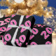 This fun wrapping paper design features the number "20" having a light pink and dark pink stripes pattern, on a black coloured background. Wrapping paper like this might be used when wrapping presents being given to celebrate somebody’s 20th birthday, or a couple’s 20th wedding anniversary, or some other twentieth event or milestone. [~Z0000379]