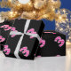 This fun wrapping paper design features a large number "3" with a light pink and dark pink stripes pattern, on a black coloured background. Wrapping paper like this might be used when wrapping gifts or presents being given to celebrate somebody’s 3rd birthday, or a couple’s 3rd wedding anniversary, or some other third event or milestone. [~Z0000379]