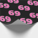 This fun wrapping paper design features the number "69" with a light pink and dark pink striped pattern, on a black coloured background. Wrapping paper like this might be used when wrapping gifts or presents being given to celebrate somebody’s 69th birthday, or a couple’s 69th wedding anniversary, or some other sixty ninth event or milestone. [~Z0000379]