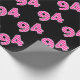 This fun wrapping paper design features the number "94" with a light pink and dark pink stripes pattern, on a black coloured background. Wrapping paper like this might be used when wrapping gifts being given to celebrate somebody’s 94th birthday, or a couple’s 94th wedding anniversary, or some other ninety fourth event or milestone. [~Z0000379]