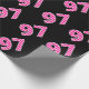 This fun wrapping paper design features the number "97" with a dark pink and light pink striped pattern, on a black coloured background. Wrapping paper like this might be used when wrapping presents being given to celebrate somebody’s 97th birthday, or a couple’s 97th wedding anniversary, or some other ninety seventh event or milestone. [~Z0000379]