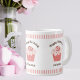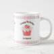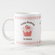 Surprise a family member, friend or co-worker with this jumbo or expresso sized personalised birthday cupcake mug. Ready for you to personalise with her name. Cute frosted cupcake on a pink and white stripes pattern available in your choice of three styles. See other party and dinnerware items in this same design in the Cupcakes category at www.zazzle.com/pinkladybugs