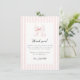 Elegant minimal baby shower thank you card that features a pink & white stripe pattern and a cute bow.