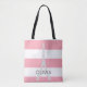 Pink Stripes Eiffel Tower | Custom Name Tote Bag