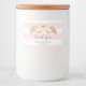 Custom text baby shower label in pretty light pastel pink and white stripes pattern with peach pink watercolor flowers.