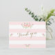 Pink Stripes Flowers Wedding Thank You Card
