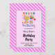 Pink Stripes Framed 7th Birthday Party Invitation
