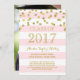 Pink Stripes Gold Confetti Photo 2017 Graduation Invitation