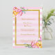 Pink Stripes Gold Frame Flower Wedding Invitation