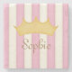 Pink Stripes Personalised Name Princess Crown Stone Coaster