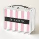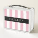 Pink Stripes, Striped Pattern, Lines, Your Name Metal Lunch Box