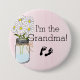This adorable badge or pin back button tells all your baby shower guests "I'm the Grandma". A pink and white striped background, with a vintage mason jar filled with pretty white daisy flowers. Black baby footprints. Personalise for other baby shower guests. To see coordinating products - Please visit my store "The Hungarican Princess" at www.zazzle.com/hungaricanprincess*. Look in my "Pink and White Mason Jar Baby Shower Collection". Congratulations.