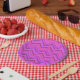 Pink stripes zigzag pattern paper plate