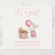 Modern minimalist " it's a girl " nursery baby shower theme, design feature watercolor rabbit in pink cloth holding the balloon and her baby carriage stroller. You will find baby shower invitation, baby shower party decor supplies in this collection. Customise your own word and colour using the edit design.
