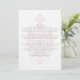 Simple with chic elegance describes this sophisticated Subtle Damask Wedding Information Card with a light pink damask flourish background. This modern info card is perfect for a traditional wedding and can be easily customised with your wedding details. For more customisation options, click on the Customise It button.