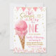 Pink Summer Two Scoops Ice Cream 2nd Birthday Invitation