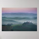 Pink sunrise over a Tuscany landscape poster