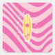 Pink Surfboard, Beach Art, Tropical Vibes, Preppy Square Sticker