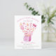 A budget Baby Girl Baby Shower Invitation. On a white background, the design is decorated with cute pink baby themed items exploding from a box, including bottles, bows, ducks, stars, balloons and more. Personalise by adding your full event and contact details to the front and back.