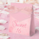 A feminine pink party favour box with the text "Sweet 16" set in elegant pink font to celebrate this milestone birthday.
