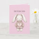 Pink Sweet Cute Bunny Pink Sweater Heart Birthday Card