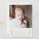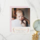 Announce the arrival of your beautiful baby girl with this simple and sweet birth announcement. The name of your baby, as well as the birth information, is framed by a wreath of delicate flowers and leaves. The top of the design features a pretty scalloped border. There is also space for a large photo of your new addition. The back of the card features a pink, hand-drawn gingham pattern... Be sure to check out the coordinating self-addressed envelope.