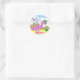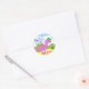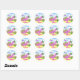 Pink T-Rex Dinosaur Name Stickers. An adorable cute little pink cartoon T-Rex dino Tyrannosaurus Rex in a pre-historic stone age landscape with palm trees, mountains and vulcano shooting colour stars in a beautiful blue sky with white clouds round sticker with Your Name. Fill in your name to personalise your unique special T-Rex dinosaurs stickers with your name! This Tyrannosaurus Rex dinosaur sticker is fully customisable, add your texts and image(s). Great back to school dinosaur stickers or birthday gifts and presents stickers for the little/ big dinosaur fan!