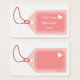 A pink on pink business card size blank tag with a heart embellishment against a white background. Print your personalised message and add it into your invitation as an extra message reminder. Perfect for Bridal Showers, Baby Showers and more.