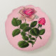 Digital version of a vintage botanical print of pink tea roses with a pink background.
