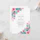 This design features a delicate watercolor arrangement of blossoming pink peonies and roses nestled among vibrant teal and aqua foliage. The airy layout creates a romantic and serene mood, perfect for a fresh seasonal aesthetic. Soft washes of color blend seamlessly into the background, highlighting the intricate details of the hand-painted petals and leaves.