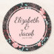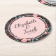 Pink & Teal Dark Floral Pattern Round Paper Coaster