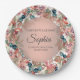 Elegant botanical pink and teal watercolor floral and leaves garden-theme graduation party paper plates for girls customised with her name, school name, and graduation year.