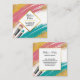 Make a lasting impression with this elegant and professional Makeup Artist Business Card! Featuring bold, artistic brush strokes in pink, teal, and gold with a touch of shimmering glam, this square design is perfect for beauty professionals who want to stand out.