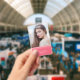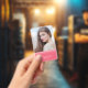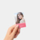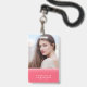 A chic modern photo badge featuring a pink layered design on the front where you can also add your photo and a teal colour back side. Perfect as an office badge for your staff and also a great way to introduce yourself at meetings or events.